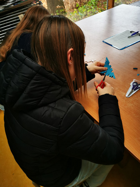 Ein besonderer Höhepunkt war das praktische Tun in verschiedenen Bereichen. So konnten die Schülerinnen und Schüler Schneeflocken basteln – eine kreative Aktivität, die nicht nur Spaß machte, sondern auch motorische Fähigkeiten förderte und den Handwerks- bzw. Kunstaspekt der pädagogischen Arbeit verdeutlichte. In der Rhythmikraum-Station zeigte sich die Bedeutung von Musik und Bewegungsübungen für die Entwicklung von Kindern: Eine mitreißende Übung half dabei, Rhythmusgefühl zu erleben und die Bedeutung von Bewegungsförderung in der frühkindlichen Bildung zu verstehen.