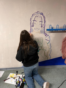 Die Hintergrundgestaltung, die als verbindendes Element zwischen den einzelnen Motiven dient, wurde von unseren aktuellen 10. Klassen im Kunstunterricht entwickelt und umgesetzt. Die einzelnen Bildelemente entstanden durch die kreative Arbeit von rund 30 Schülerinnen und Schülern der Klassenstufen 6 bis 10 und wurden im Rahmen mehrerer Projekttage realisiert.