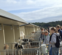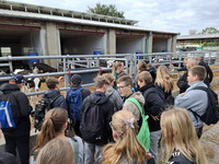 In den drei Gruppen erkundeten die Jugendlichen die Bereiche erneuerbare Energien, Tierhaltung im Rinderstall und Landwirtschaft mit moderner Technik. Die Schülerinnen und Schüler sammelten dort wichtige Eindrücke über Berufsfelder, Ausbildungsmöglichkeiten und zukunftsrelevante Technologien in der Landwirtschaft. Besonders spannend empfanden die Teilnehmenden die techniknahen Stationen: Von modernen Arbeitsmaschinen bis hin zu automatisierten Abläufen im Stall boten sich vielfältige Einblicke in Praxis und Innovation. Ein weiteres Highlight war der Besuch bei den Kälbern: Die Gruppen konnten sogar ein neugeborenes Kalb live erleben, was bei vielen Begeisterung hervorrief und den Alltag eines modernen Landwirtschaftsbetriebs greifbar machte.