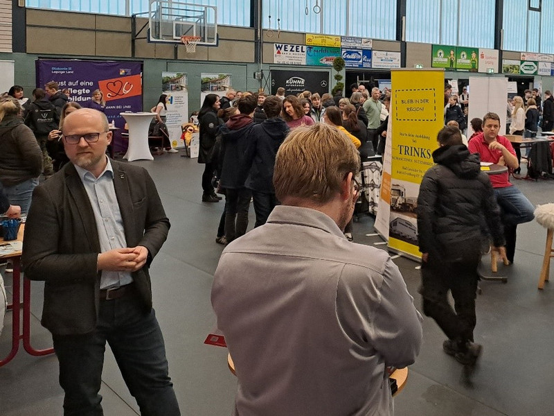 Auch der Bürgermeister von Frohburg, Herr Karsten Richter, stattete der BO-Messe einen Besuch ab und sicherte der Schule im nächsten Jahr volle Unterstützung bei der Umsetzung der 11. Auflage der Berufsorientierungsmesse in Frohburg zu.