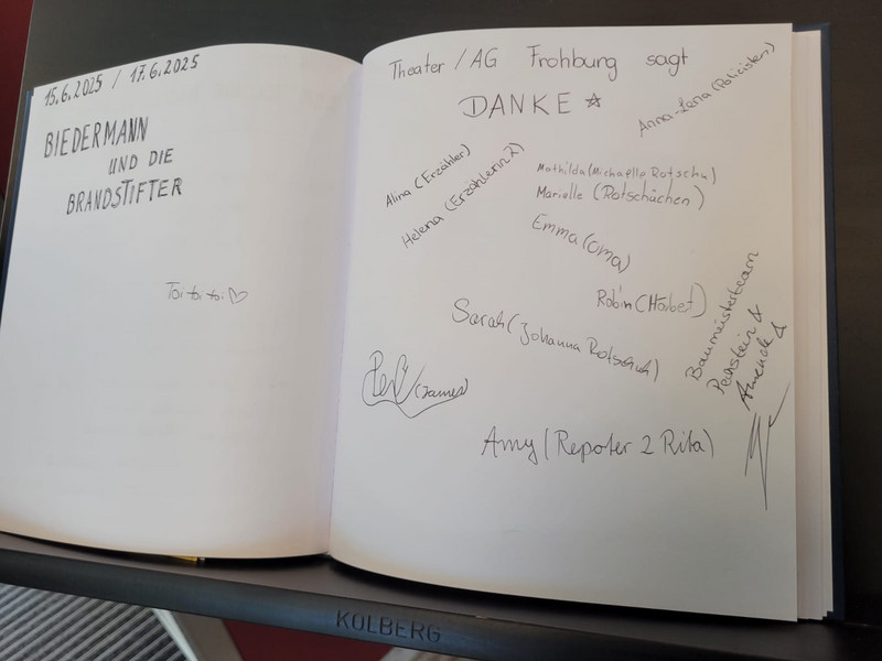 Nachdem die Theatergruppe der Oberschule "Maxim Gorki" ihr eigenes Stück "Rotschühchen" mit großem Erfolg auf die Bühne gebracht hat, unternahmen die Schülerinnen und Schüler am 17.06.2025 einen spannenden Ausflug ins Landestheater Altenburg, wo sie die Aufführung von „Biedermann und die Brandstifter“ nach Max Frisch besuchte.