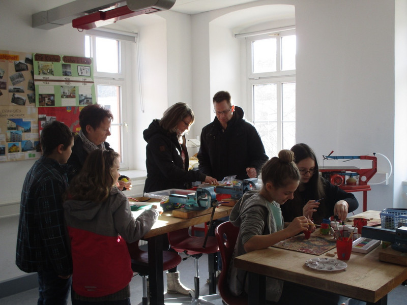 Groß war auch der Einsatz unserer Schüler, Eltern und Lehrer. In vielen Zimmern wurden schon am Freitag Tische und Stühle gerückt, Exponate, Hefte und Bücher ausgelegt, gebacken, gekocht und alles so vorbereitet, dass sich am Sonnabend jeder wohlfühlen und zurechtfinden konnte.