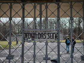 auf das bekannte Eingangstor mit der Inschrift „Jedem das Seine“, das sinnbildlich