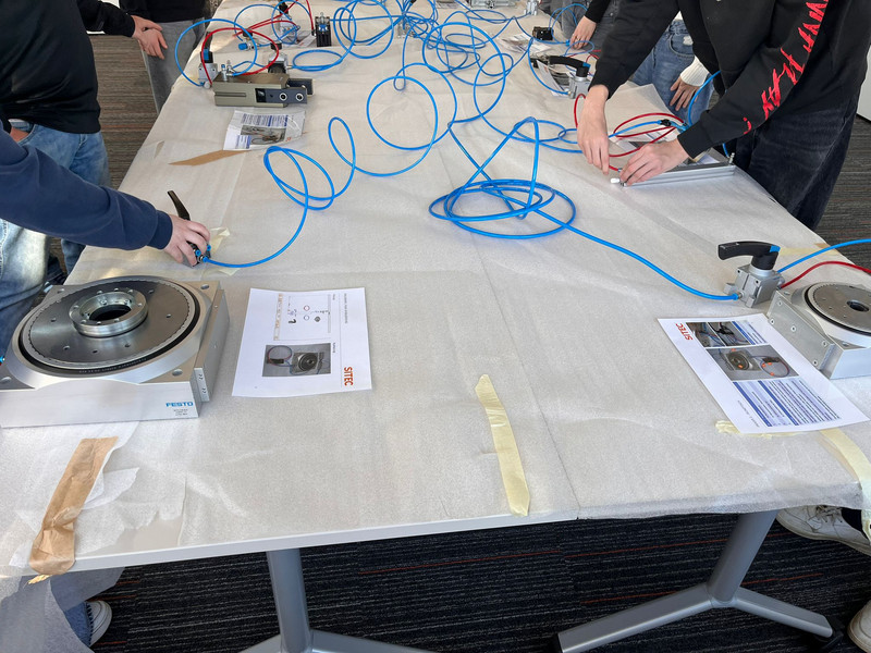 Der dritte Teil bestand aus einem Workshop zum Thema Druck und Pneumatik. Hier konnten die Schülerinnen und Schüler ihr Geschick beim Zusammenbau pneumatischer Systeme testen und gleichzeitig den Bezug zu den aktuellen Unterrichtsinhalten im Fach Physik herstellen.
