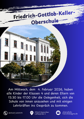 Wir begrüßen Sie ganz herzlich auf der Homepage der Friedrich-Gottlob-Keller-Oberschule, der Oberschule der Stadt Hainichen.