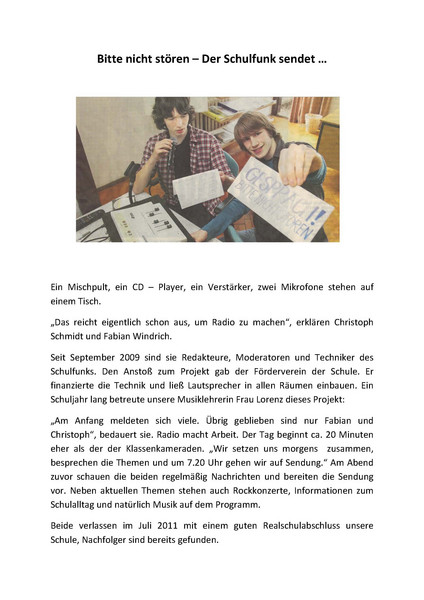 Bitte nicht stören - Der Schulfunk sendet ...