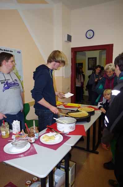 Zum Tag der offenen Tür war eigentlich für jeden Besucher etwas dabei. Die Modenschauen und Rock-Challenge hatten so viele Besucher, dass in den Gängen kein Platz mehr war. Wer sich stärken wollte, konnte das im Bereich Hauswirtschaft bei Finger Food, Kanapees und Quarkbällchen tun. Auf dem Weg dahin hatte die Freiwillige Feuerwehr brennende Fackeln aufgestellt. Darüber hinaus gab’s Projekte wie „Spielen macht Schule“ und „Kinderrechte und Spiele weltweit“. In der Sporthalle konnte man sich bei Basketball und Unihockey ausprobieren.