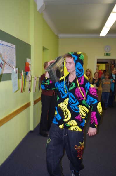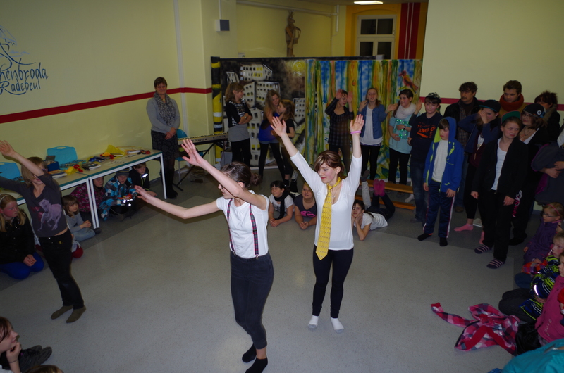 Tanzen, Kostüme, Kulissen – schon unsere Projektwoche war recht abwechslungsreich. Nachdem wir uns im Zimmer 1 getroffen hatten, wurde sich erst mal aufgewärmt und Tanzschritte geübt. Dann haben wir unseren Lehrern die uns bekannten Schritte gezeigt und Kostüme, Make-up und Frisuren besprochen. Danach ging es ans Probieren. Am Mittwoch durften wir in den Landesbühnen Sachsen mal hinter die Kulissen schauen und den Probensaal des Balletts benutzen. Wir konnten vor dem großen Spiegel unseren Tanz üben. Am Tag darauf haben wir die Kulissen vom Boden geholt, uns die Videos mit den Auftritten der anderen Schuljahre angeschaut und geprobt, geprobt und geprobt. Vor unserem Auftritt am Freitagabend haben wir noch ein paar Mal das gesamte Programm durchgetanzt. Als wir dann aufgetreten sind, waren ganz viele Zuschauer da und es hat uns allen sehr viel Spaß gemacht. Ich hoffe, wir werden bei unseren Projektwochen immer so viel Spaß haben.