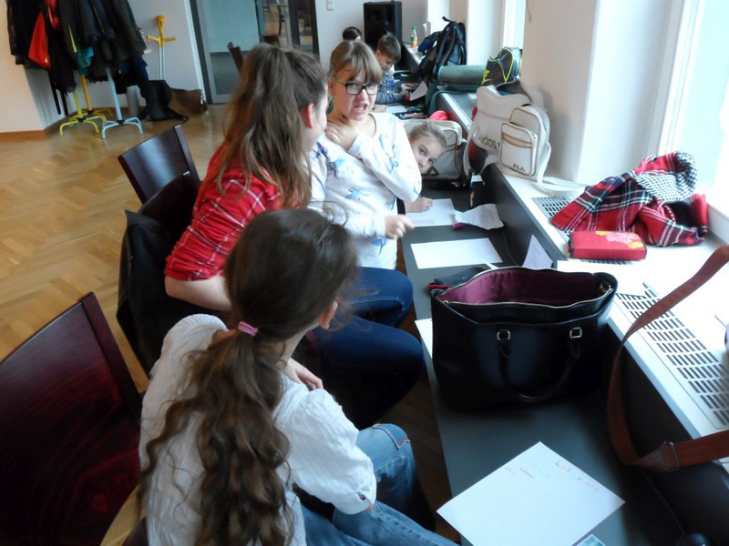 Mittwoch: Wir haben um 8 Uhr angefangen, unsere Stücke zu proben. Danach haben wir sie den anderen Gruppen wieder vorgeführt und darüber geredet. Um 10 kam die Schauspielerin Cordula Hanns und spielte das Theaterstück „Labyrinth“. Es war sehr schön und wir haben viel gelacht. Alle fanden es gut, dass sie das Publikum mit einbezogen hat. Dann haben wir über die guten und schlechten Seiten des Internets und der Netzwerke gesprochen. Paul 6b
