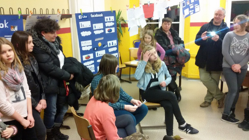 Heute war die Aufregung groß. Nach dem üblichen Chaos bei der Generalprobe, ging es dann an die Aufführung vor den Eltern und Gästen während des Tages der offenen Tür. Souverän zogen wir von Zimmer zu Zimmer, um dort unsere Stücke aufzuführen, stets gefolgt von begeisterten Zuschauern sowie Anna und Moritz von den Landesbühnen. Ein super Tag! Ihr wart eine tolle Schauspieltruppe. Applaus! (Frau Milke und Herr Israel)