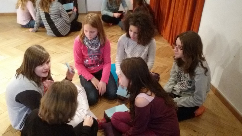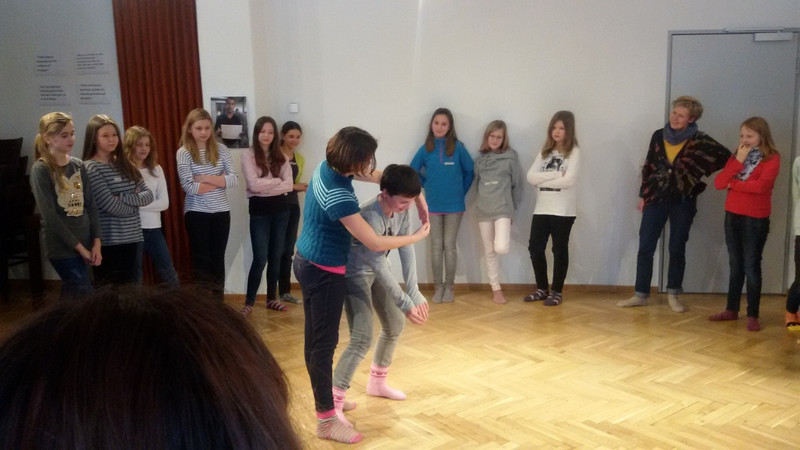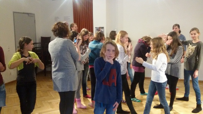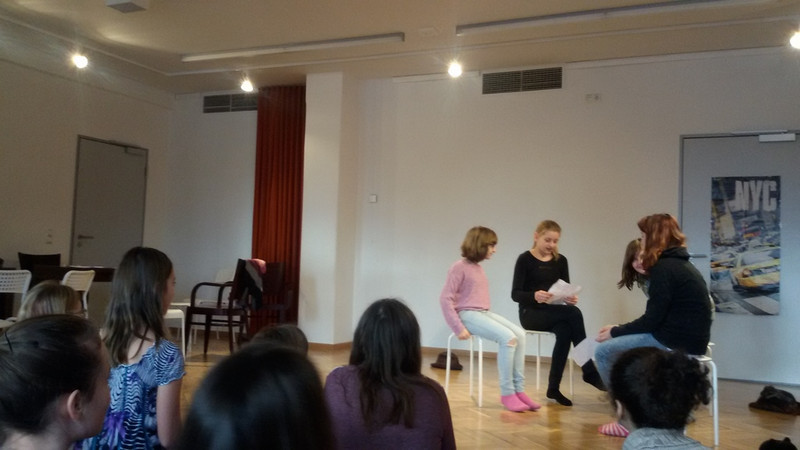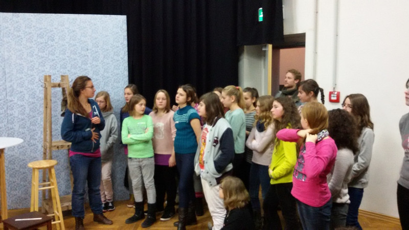 Wir konnten bei einem Rundgang einen Blick hinter die Kulissen werfen und viele Fragen stellen. Nach den ersten Kennenlernspielen und Übungen haben wir dann in Gruppen kleine Szenen einstudiert. (Sarah-Jane, 6a)