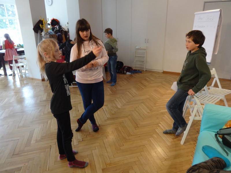 Lilly: "Wir haben unser Stück weiter geprobt und uns vorbereitet auf die Aufführung. Ich habe gelernt, dass man nicht mit dem Rücken zum Publikum steht."