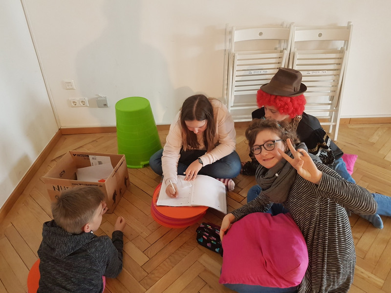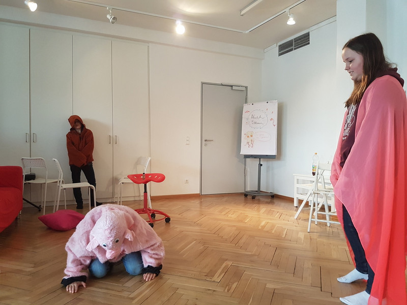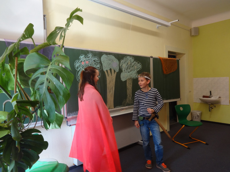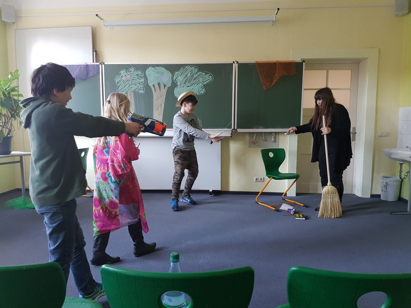 Milena: "Am Anfang haben wir das Kotzende Känguru gespielt. Es war lustig! Danach haben wir noch geprobt. Unser Stück ist toll!"