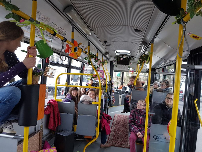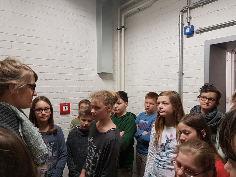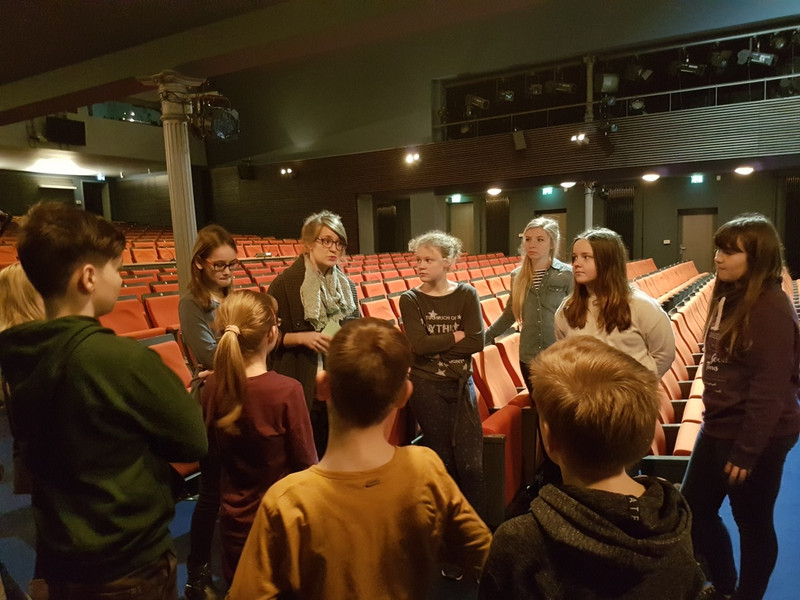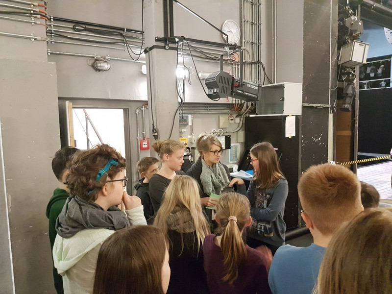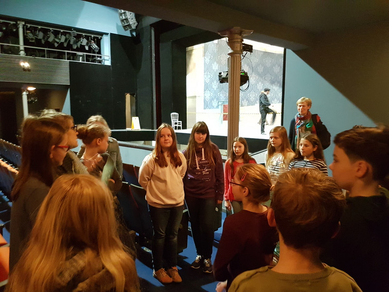 Luisa G.: "Heute haben wir eine Aufwärmübung gemacht und danach sind wir durch die Landesbühnen geführt worden. Wir haben alles vom Theater gesehen und auch zugeguckt, wie ein paar Männer eine Kulisse aufgebaut haben. Nach der Führung haben wir das Theaterstück "Lillys Bus" in einem echten Bus angeguckt. Das war cool!"