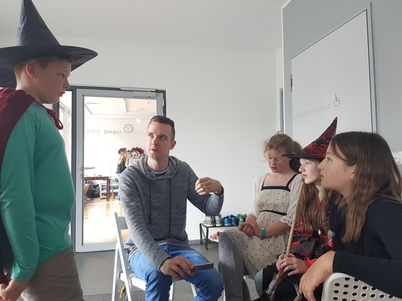 Emma: "Heute war es echt lustig. Wir haben heute geprobt. Die Jungs sind echt lieb und lustig. Bis jetzt ist es der coolste Tag der Woche. Ich habe gelernt, dass man den Überblick behalten muss. Es war schwer, sich was auszudenken."