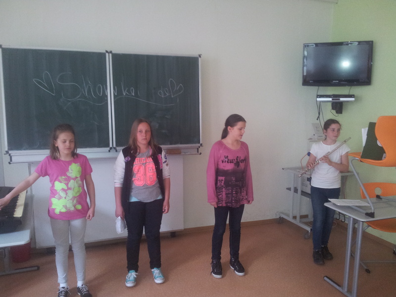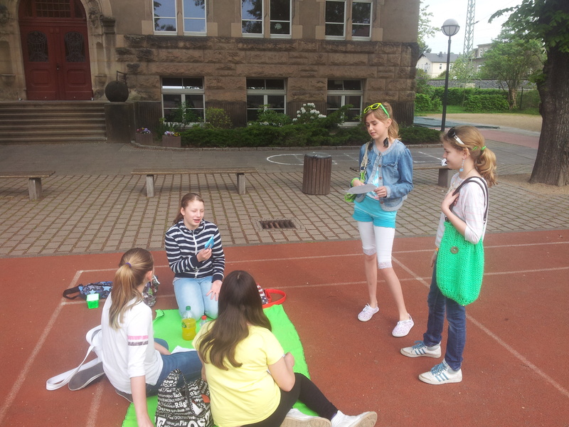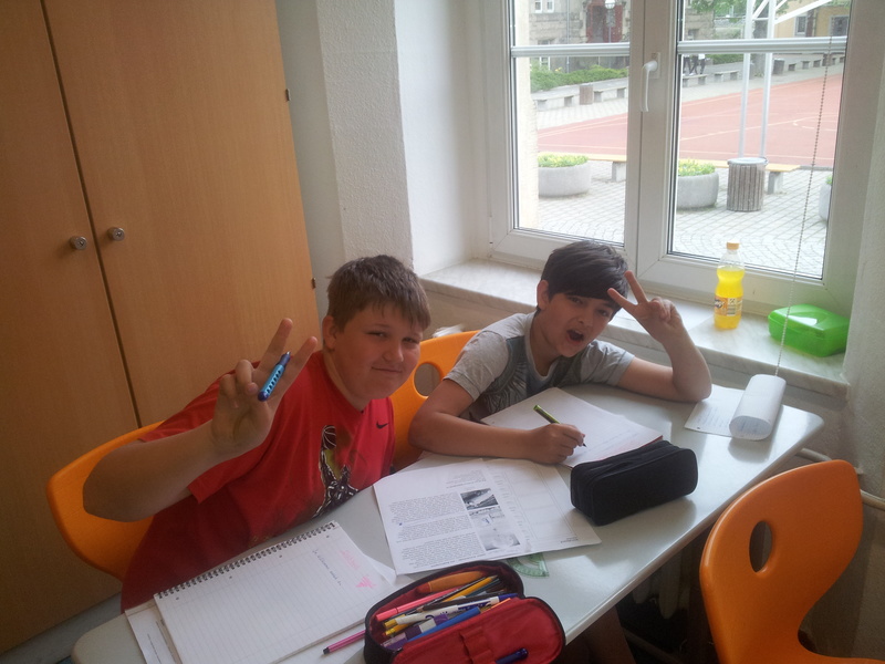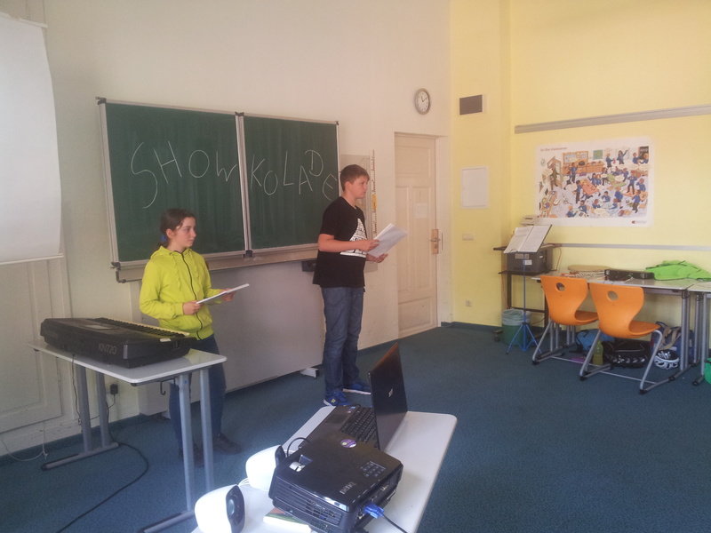 Donnerstag: Los ging es heute mit einer Runde "HIP/HEP" und "Kotzendes Känguru". Doch leider war diese Übung viel zu schnell vorbei, denn nachher ging es wieder ans Üben und Filmen. Vor allem unsere beiden Moderatoren hatten ordentlich zu tun. Bei der großen gemeinsamen Probe schienen die Lehrer noch kritischer als sonst zu sein. Zum Schluss hatten wir aber dann doch alle Filme im Kasten und ein gutes Gefühl für Aufführung morgen.