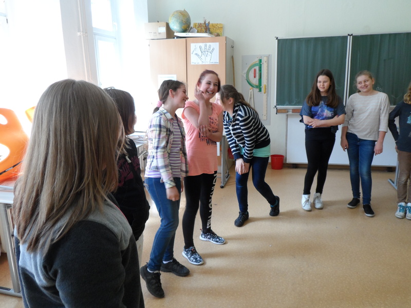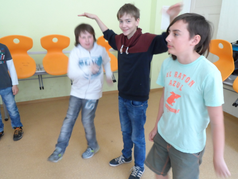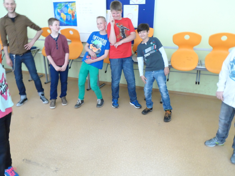 Montag: Unser Projekt begann heute mit einem Schokoladen-Rap. Die Spielideen für unsere selbst gewählten Themen hatten wir anschließend ganz schnell gefunden. Das Ausarbeiten war dann schon schwieriger. Zwischendurch hatten wir aber jede Menge Spaß bei den Improvisationsübungen, wie z.B. dem Mixer und dem kotzenden Känguru.