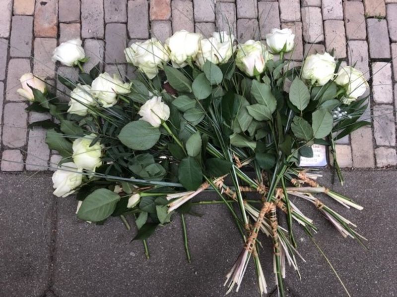 für Mitmenschlichkeit, Akzeptanz und Toleranz, für Miteinander statt Gegeneinander zeigten sich beim symbolischen Putzen der Stolpersteine in der Moritzburger Straße in Radebeul Schülerinnen und Schüler sowie Lehrer und Schulleitung der Oberschule Kötzschenbroda und des Förderschulzentrums „Anne Frank“. Im Gedenken an die Novemberpogrome vor nunmehr 80 Jahren wurden weiße Rosen niedergelegt. Im persönlichen Gespräch überreichte Frau Ingrid Lewek der Schulleiterin das Buch „Juden in Radebeul“, auch als Dankeschön für das Gedicht von Emma Kohlschmidt.