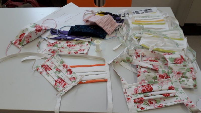 Gern können auch eure Eltern und Freunde unsere Aktion unterstützen. Am Freitag haben fleißige Lehrerinnen schon viele Masken verschiedener Art genäht.