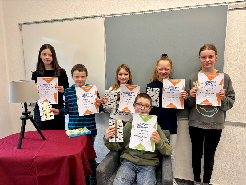 Es war dieses Jahr ein spannendes Kopf-an-Kopf-Rennen. Am 13.12.2023 fand der Vorlesewettbewerb der 6. Klassen statt. Sechs Schülerinnen und Schüler aus der 6a und 6b traten gegeneinander an. In der ersten Runde lasen alle aus einem selbst gewählten Buch vor. Von einer romantischen Liebesgeschichte bis zum Abenteuer im Weltall sowie einem spannenden Krimi war alles dabei. In einer zweiten Runde musste ein fremder Text vorgelesen werden. Lola, Luisa und Marit aus der 10a bildeten gemeinsam mit Herrn Rieger die Jury. Am Ende kürten sie Vincent aus der 6a zum Sieger. Herzlichen Glückwunsch, Vincent. Wir drücken dir für die nächste Runde in Meißen die Daumen.