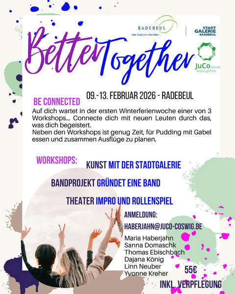 Auf dich wartet in der ersten Winterferienwoche einer von 3 Workshops...Connecte dich mit neuen Leuten durch das, was dich begeistert.