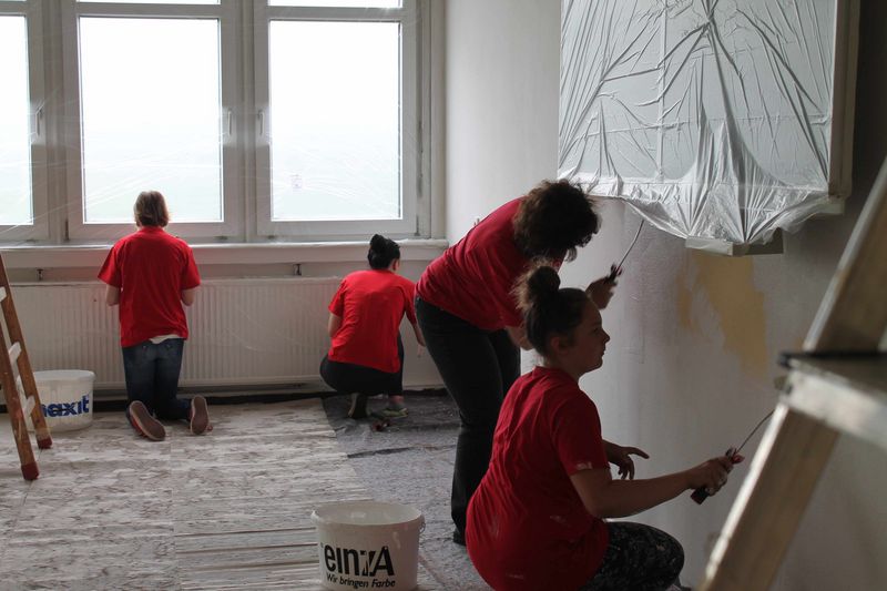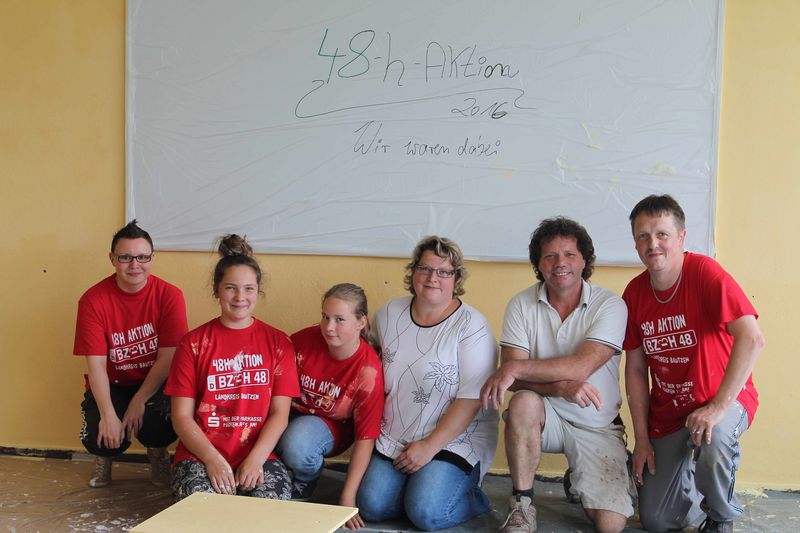Im Juli soll die große Sanierung unserer Oberschule starten. Da die 2. Etage im Sanierungsplan nicht enthalten ist, dachten wir uns, einen sanierungsbedürftigen Raum selbst in der 48 Stunden Aktion zu verschönern. Hausmeister, Lehrer, Eltern und Schüler spachtelten und malerten am Freitag und am Samstag, so dass Frau Meyer, nun in Ihrem schicken Geschichtsraum unterrichten kann. Ganz besonders bedanken möchte sich die Schule bei der Firma Jans Wünsche, die Malerbedarf und Farben zur Verfügung stellte. Ein großes Dankeschön gilt Herrn Fabian, Frau Siebenhaar, Frau Werner, und unserer sehr engagierten Praxisberaterin Frau Beier, die beide Tage organisierten und selbst mit Hand anlegten. Im Rahmen der 48h Stunden Aktion 2016 haben uns die Schüler Josephine Gierth, Sara Siebenhaar,Emely Walpert, Jessica Freyer, Paula Köcher und Vanessa Jahn tatkräftig unterstützt. Vielen Dank an alle fleißigen Helfer!!