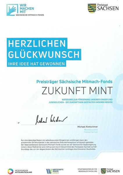 Ein ganz besonderes Projekt haben Neukircher Schüler und der Schulsozialarbeiter Martin Flickinger geschaffen. Das Projekt heißt „Blühwiese“. Die Schüler wollten etwas gegen das Insektensterben tun. Deshalb haben sie sich Gedanken gemacht, wie wir in Neukirch/Lausitz künftig unsere heimischen Insekten retten können. Hinter der Schulsportanlage an der August-Bebel-Straße soll ein Kleinod für Bienen und andere Insekten entstehen. Neben der Wildblumenwiese pflanzen wir verschiedene, alte Obstbaumsorten, u.a. Apfel, Kirsche und Pflaume. Für jeweils immer drei Bäume übernehmen die Oberschule, die Lessinggrundschule und die zwei Kindertagesstätten eine Patenschaft. Herr Flickinger, der bei Valtenbergwichtel e. V. beschäftigt ist, hat diese Projektidee beim sächsischen Mitmachfonds Wirtschaftsregion Lausitz eingereicht und eine Fördermittelzusage erhalten. Der Höhepunkt für die Ideengeber war der 27.September 2020. Denn die Schülerin, Leonie Meissner (Bild), konnte stellvertretend für alle Beteiligten dieses Projektes den Fördermittelbescheid von unserem Ministerpräsidenten Michael Kretschmer höchst persönlich entgegennehmen.