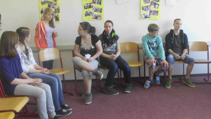 In einer Gesprächsrunde berichteten Schüler verschiedener Klassen über den Austausch mit Partnern aus Krasna Lipa.