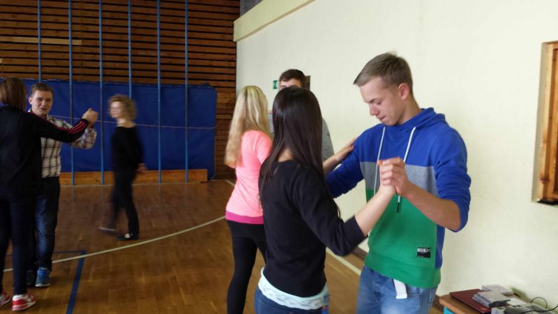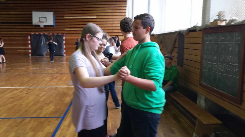 Nun wird es vielleicht doch zu einer Tradition: Bereits zum zweiten Mal fand die Tanzstunde mit der Tanzschule Pohle aus Bautzen in unserer Schule statt. Wie die „Neuner“ des letzten Jahres führten auch in diesem Jahr die SchülerInnen der Klassen 9a und 9b diese Veranstaltung durch. Als Verstärkung gesellten sich sogar einige Schüler aus der Klasse 8b dazu. Nach einigen Übungen gelangen den meisten „Tänzern“ die Grundschritte des „Langsamen Walzers“, des „Cha-Cha-Cha“ und des „Disco- Fox“. Na dann: „Darf ich bitten?“