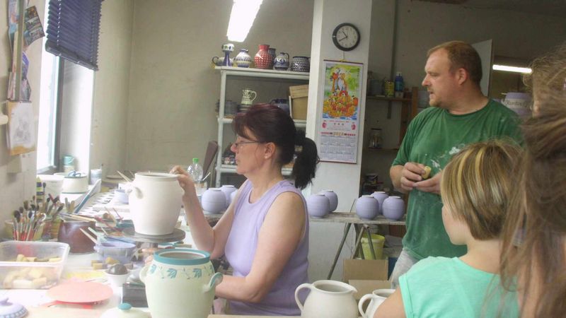 Im Rahmen des deutsch-tschechischen Schüleraustausches machten wir uns mit dem seit 1834 von Karl Gottlieb Lehmann in Neukirch gegründeten Familienbetrieb bekannt. Wir erfuhren beim Rundgang im kleinen Museum von Frau Lehmann, dass früher Braungeschirr hergestellt worden ist, welches durch die Einführung der Schwämmchenmalerei langsam abgelöst wurde.
