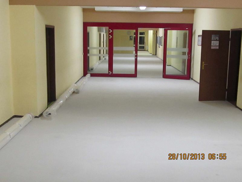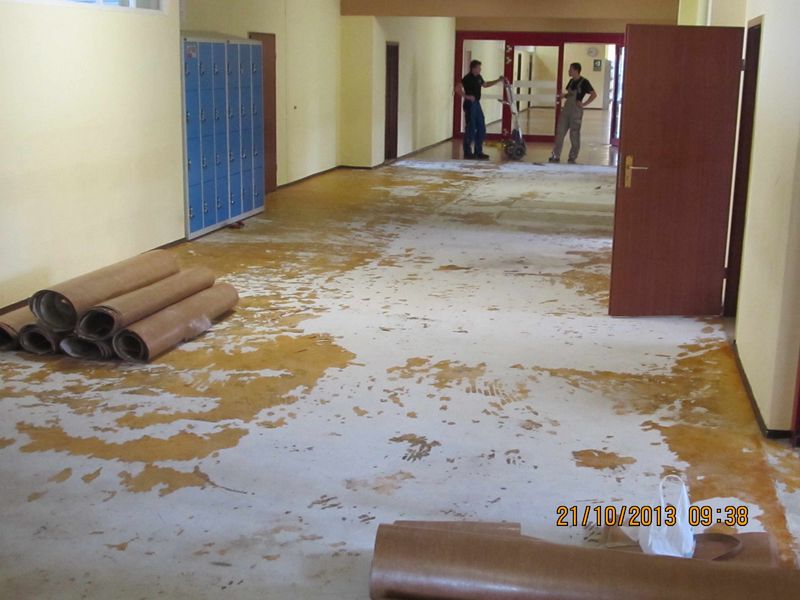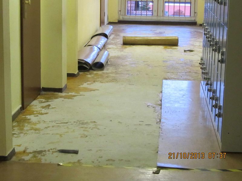 Während der Herbstferien fanden in unserem Schulgebäude erste Baumaßnahmen statt. Ein neuer Fußbodenbelag wurde in den oberen Etagen verlegt.