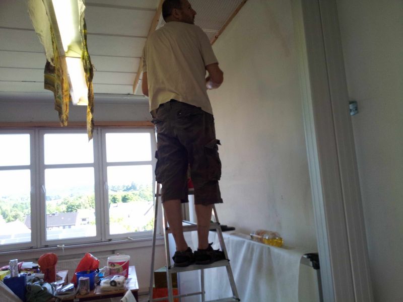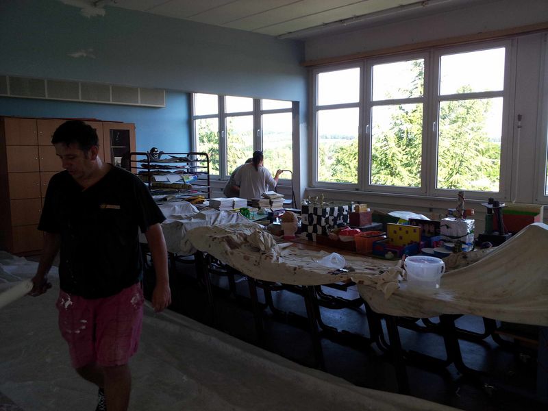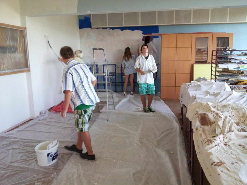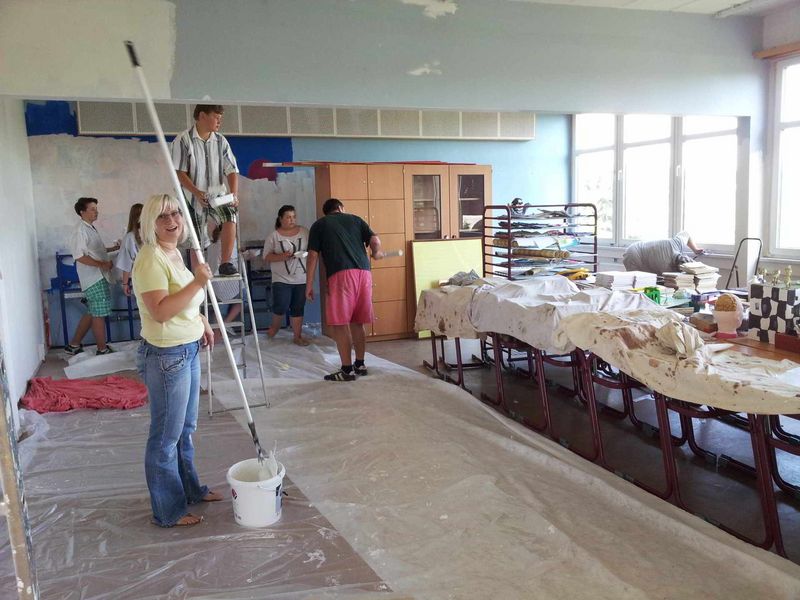 In den letzten Schulwochen des vorangegangenen Schuljahres wurde unser Kunstraum zweckmäßig verschönert. Das Team um Frau Hache malerte, spachtelte, flieste und montierte an den Feierabenden. Schüler der Klasse 7b halfen tatkräftig. Ein großes Dankeschön gilt ebenso Herrn Hache, Herrn Hiller, Herrn Höfer und den Firmen Höntschel, Bertold und Raumdesign Wünsche für die Unterstützung und Durchführung der Renovierungsarbeiten.