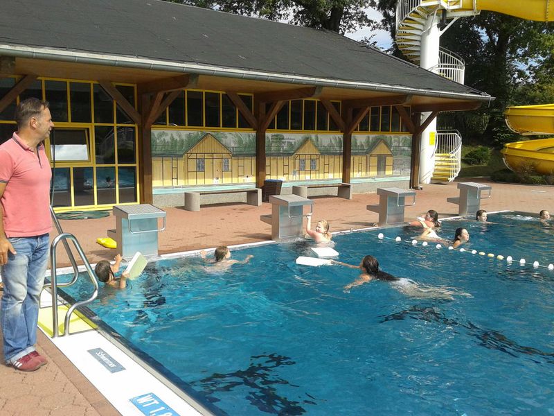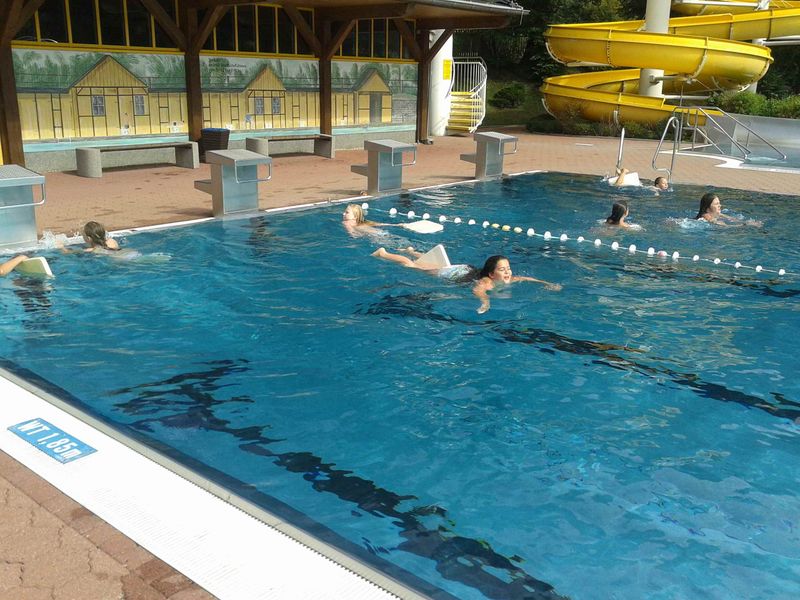 In der ersten Schulwoche vom 27.08. - 30.08.13 fand gemeinsam mit dem Sportlehrer Herrn Hötzendorfer und dem Klassenlehrer Herrn Hohlfeld für die 5. Klassen ein Schwimmlager im Steinigtwolmsdorfer Bad statt. So hatten die Schüler die Gelegenheit, sich näher kennen zu lernen und angenehm in das neue Schuljahr zu starten. Trotz der teilweise kühlen Temperaturen waren wir erstaunt, wie viele Kinder dennoch ins Wasser wollten. Mit viel Spaß und Eifer haben letztendlich alle Schüler der 5. Klassen eine Schwimmstufe ablegen können.