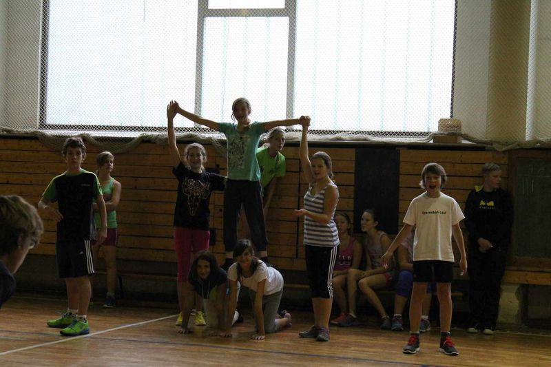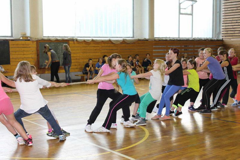 Das traditionelle Herbst- Sportfest unserer Schule fand an einem Regentag statt. Kurzentschlossen wurde es in die Turnhalle verlegt, und so kämpften die einzelnen Klassenstufen in verschiedenen Spielen gegeneinander. Krönender Abschluss war das Volleyballspiel „Schüler gegen Lehrer“, das die Lehrer gewannen. Ein Grund mehr, den Termin für das nächste Sportfest festzulegen, denn es muss neben besserem Wetter auch eine Revanche geben!