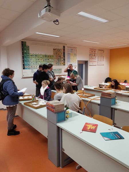 Schule zum Anfassen! Im Chemiekabinett, dem Physikkabinett oder bei kniffligen Mathe-Aufgaben waren Kenntnisse gefordert. Natürlich durften wir auch stolz die neu gestalteten Räume im Erdgeschoss und 1. Obergeschoss präsentieren. Begeisterung fand bei unseren Besuchern das "fast" fertig gestellte Kellergeschoss.