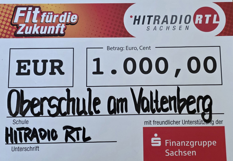 Spende für die Oberschule - Hitradio RTL mit der Sparkassen-Finanzgruppe Sachsen
