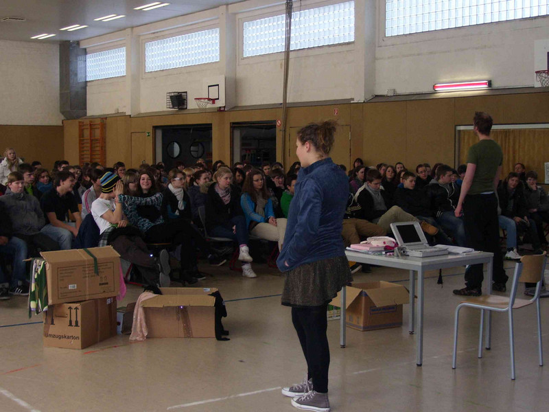 Diese Frage konnten sich die Schüler der Klassen 7 bis 10 während eines Theaterstückes, das für sie in der Turnhalle von zwei jungen Schauspielern aufgeführt wurde, stellen und jeder für sich beantworten.