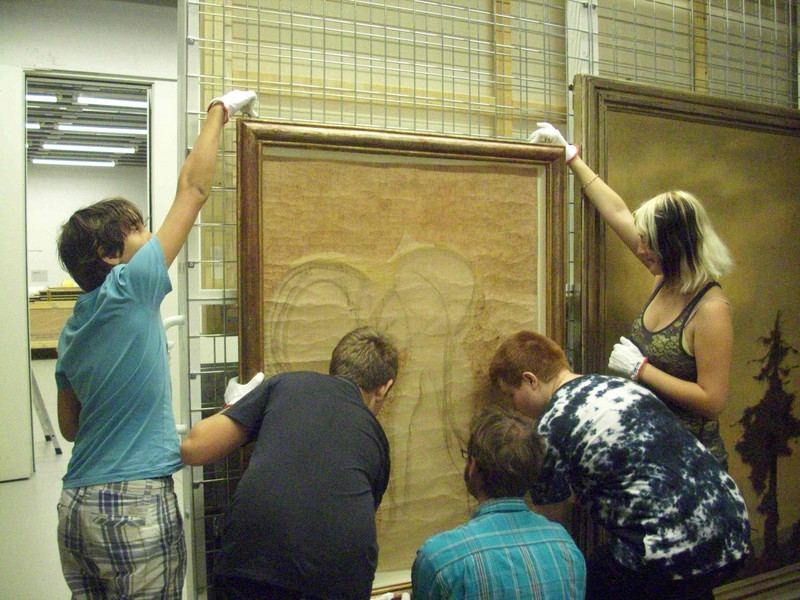 begaben sich die anderen ins Magazin. Dort lagern die Bilder, die zur Zeit nicht ausgestellt werden.