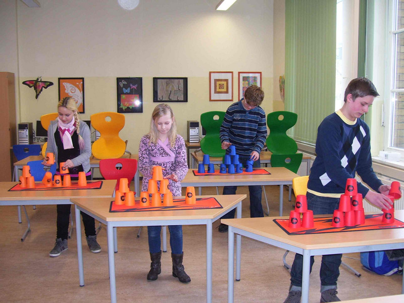 Zum Beispiel das Speed stacking schult den Einsatz beider Hirnhälften und verbessert Koordination und Konzentration, denn es müssen festgelegte Figuren nach festgelegter Reihenfolge aufgebaut und wieder abgebaut werden, wobei abwechselnd die linke und die rechte Hand benutzt werden müssen. Das auch noch nach Zeit! Unsere Angebote entfalten erst ihre Wirkung, wenn sie auch zu Hause und im Unterricht angewendet werden. Dazu fand zu Beginn des Schuljahres ein Info- Abend für die Eltern statt.