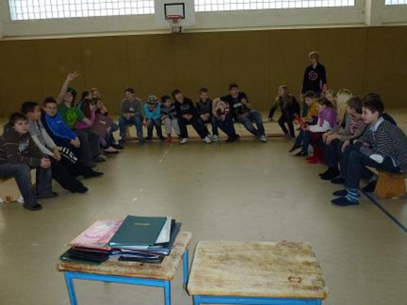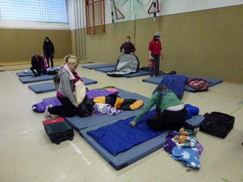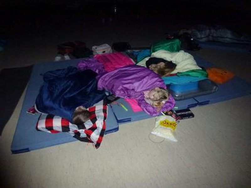 Vom 9. zum 10. Februar 2012 galt es für alle Schülerinnen und Schüler der Klasse 6a 17 Uhr noch einmal in die Schule zu kommen. Nicht etwa zum Nachsitzen verdonnert – nein. Mit Schlafsack und Isomatte, manch einer auch mit luxuriösem Luftbett, ausgestattet hieß es „Schlafplätze einrichten – in der Turnhalle!“