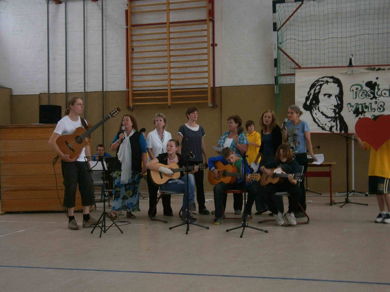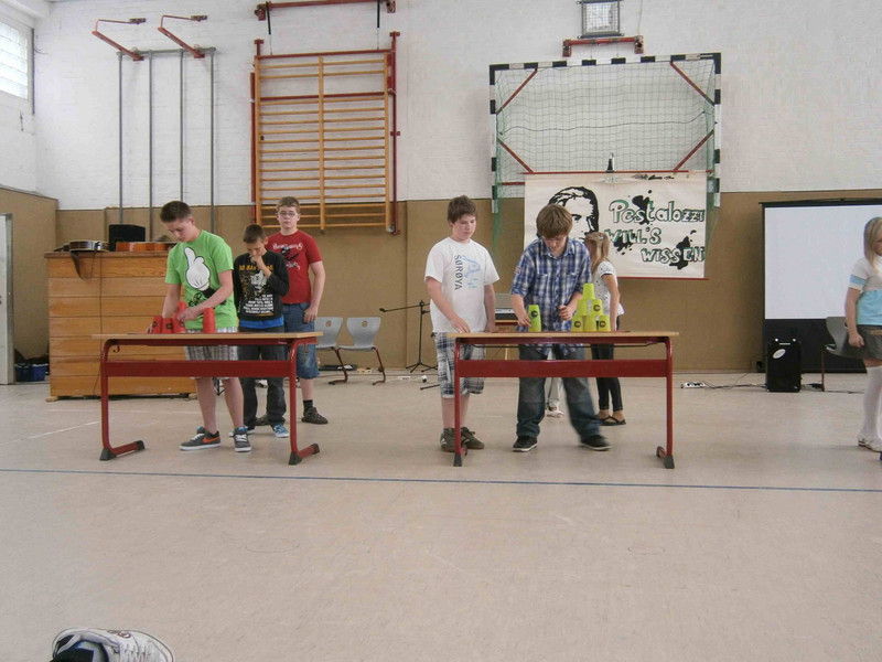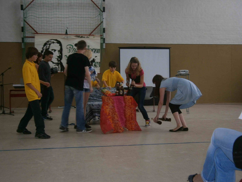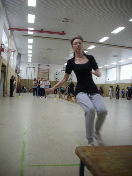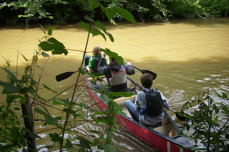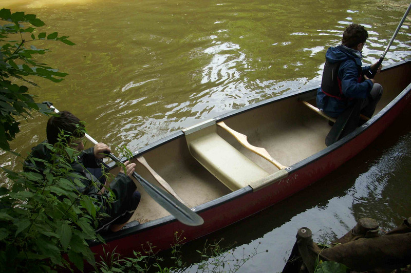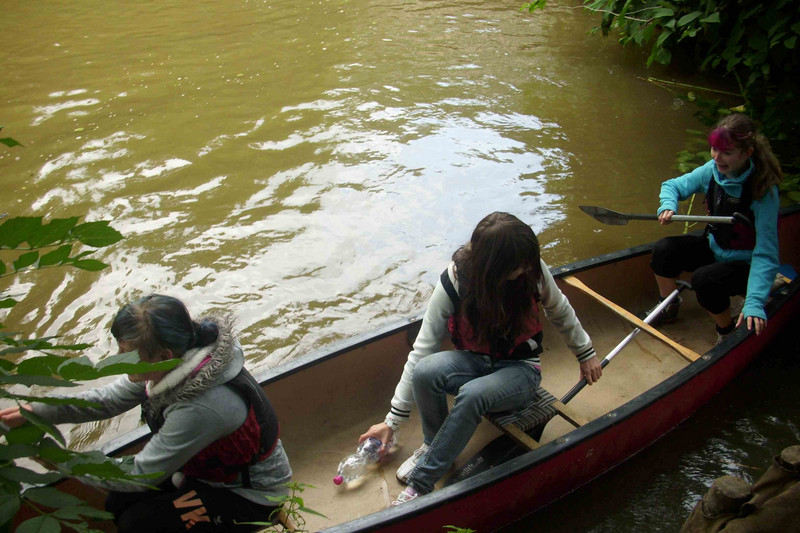 Irgendwer rammte dann das Kanu von Frau Rost und Frau Görg! So schnell konnten wir gar gucken, wie Frau Rost nach links und Frau Görg nach rechts den Abgang aus dem Kanu probten und die nasse Bekanntschaft mit der Pleiße schlossen. So haben wir endlich mal gesehen, wie auch die Lehrer „baden gingen“. Aber die Beiden haben es mit Humor genommen, wir hatten ja alle Wechselsachen mit und die Zwei wollten sie halt nicht umsonst mitgenommen haben. So mussten sie also nicht triefender Weise nach Hause fahren.