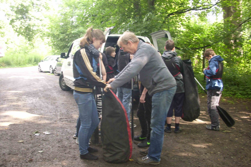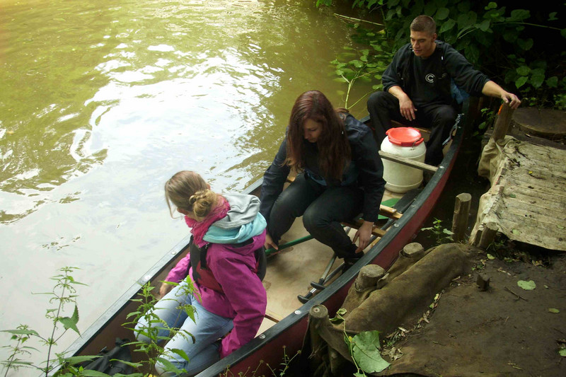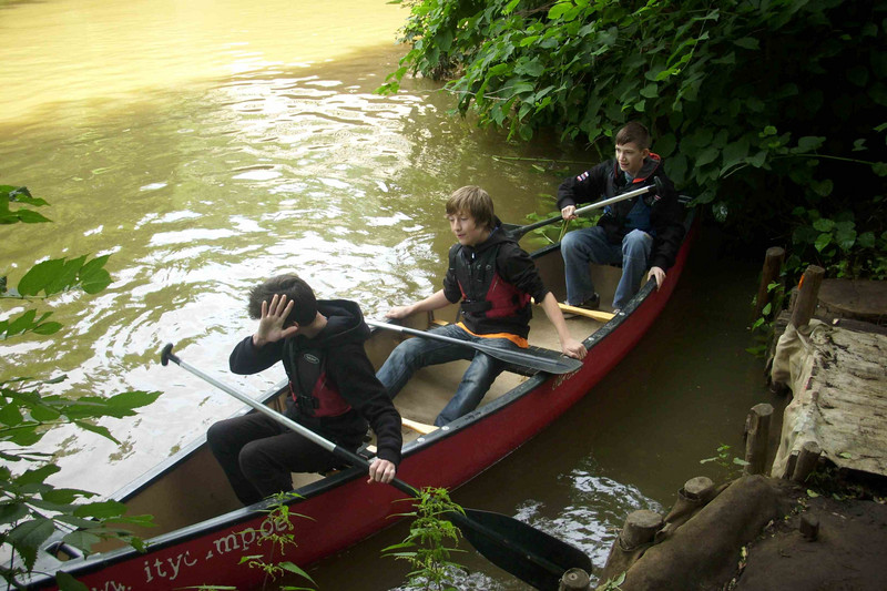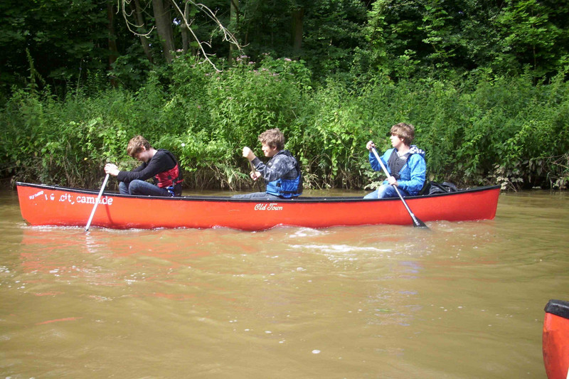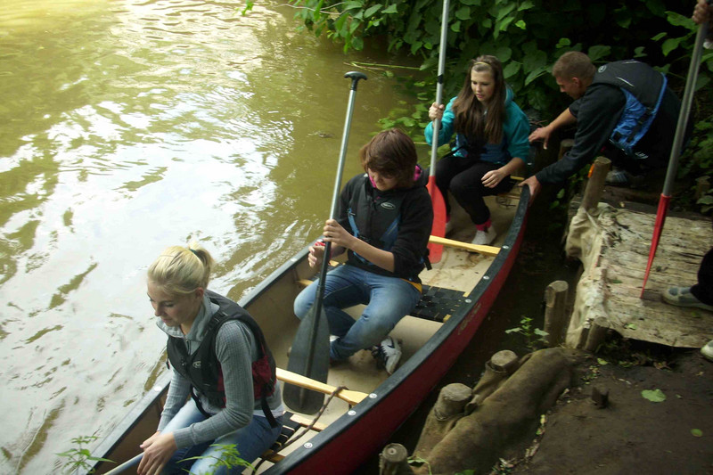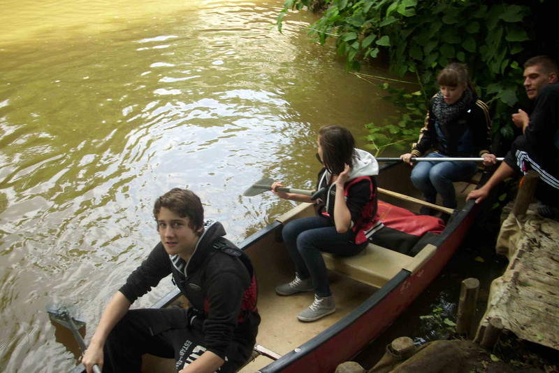 Zuerst wurden die Kanus ins Wasser gelassen und dann ging es zu dritt im Kanu los. Jeder trug natürlich eine Schwimmweste! Manche von uns beherrschten das Paddeln super und weg waren sie. Einige kamen aber nicht so gut voran und paddelten lieber im Kreis, so auch Frau Rost und Frau Görg.