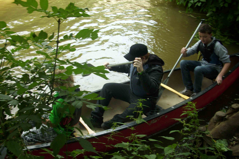 Nach einer kurzen Erklärung des Paddelns und des Steuerns ging es los. Leider hatten wir etwas Pech. Der Sturm hatte einen dicken Baum quer über den Fluss abstürzen lassen und so konnten wir nur in eine Richtung fahren.