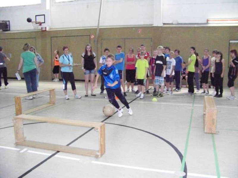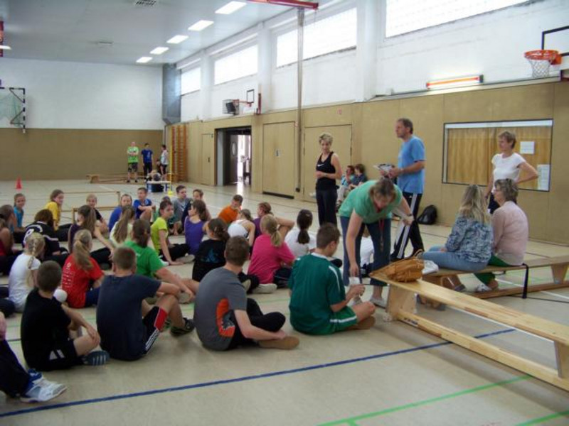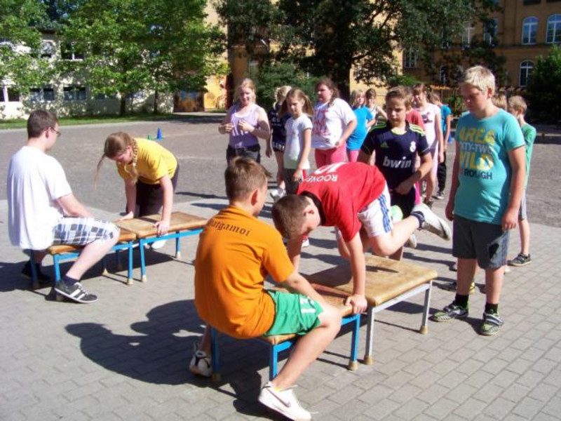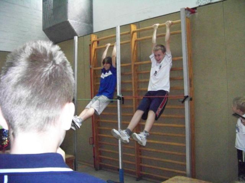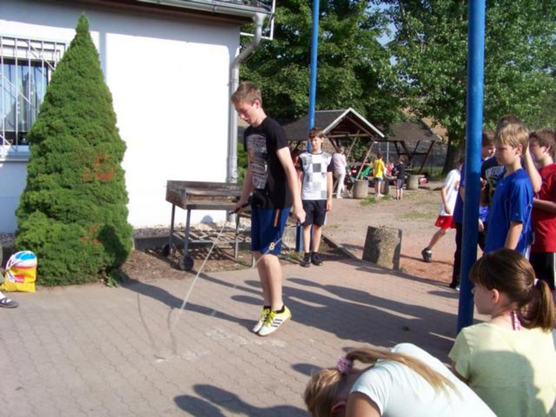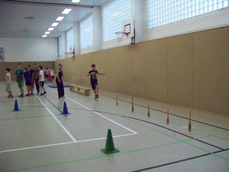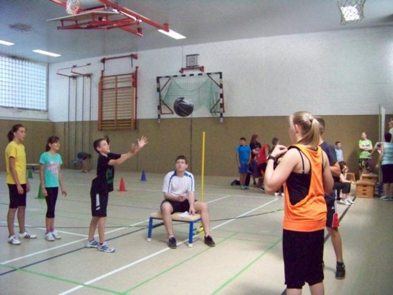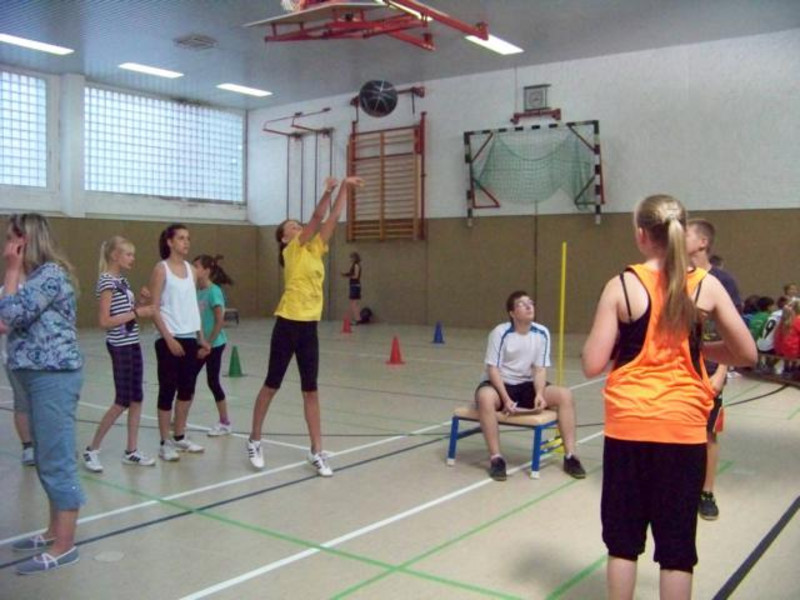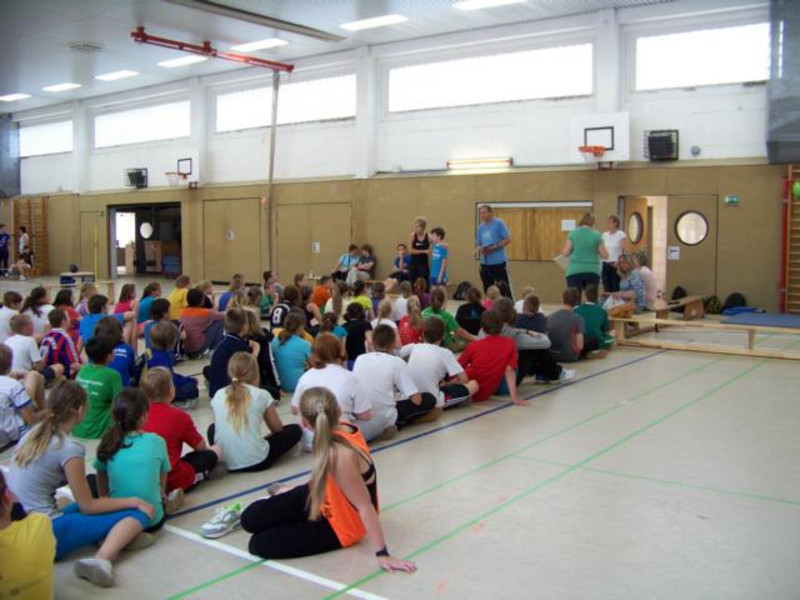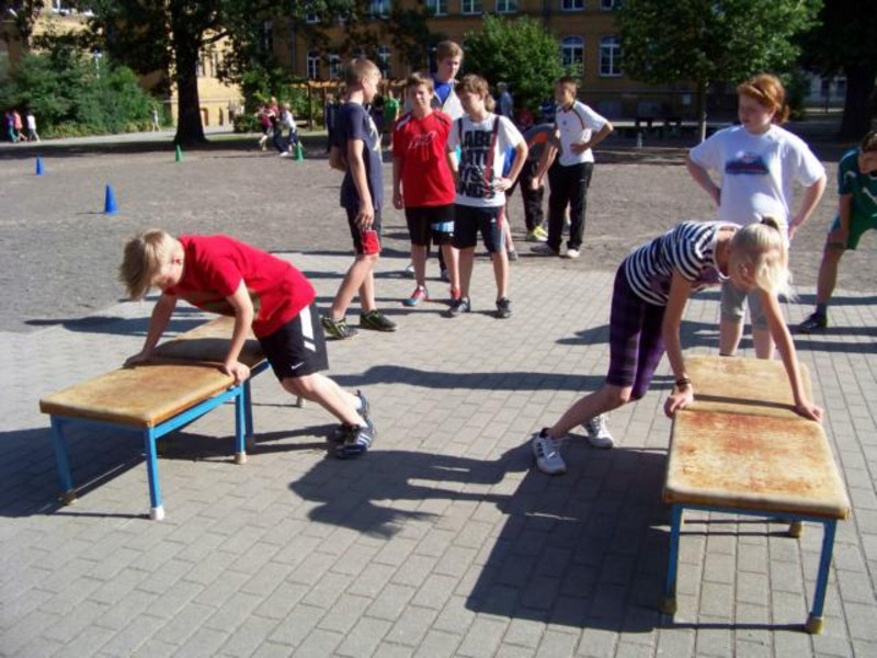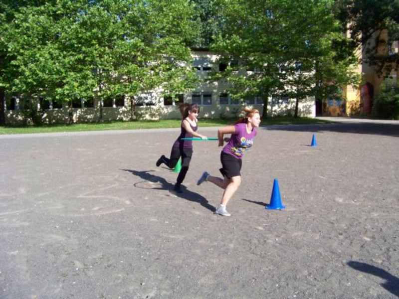 Am ersten Tag der letzten Schulwoche ermittelten die Klassen 5 und 6 sowie die Klassen 7 bis 9 die sportlichste Klasse. Gekämpft wurde in den Disziplinen Biathlonstaffel, Beinheben an der Sprossenwand, Basketballzielwerfen, Kasten- Bumerang- Test, Hockstrecksprung, Reifenpaarlauf, Hockwenden und Pendelstaffel.