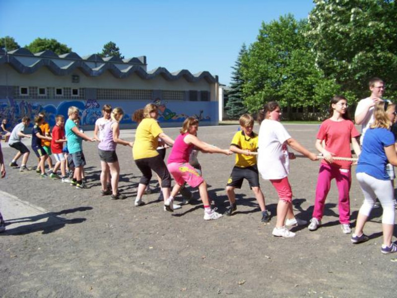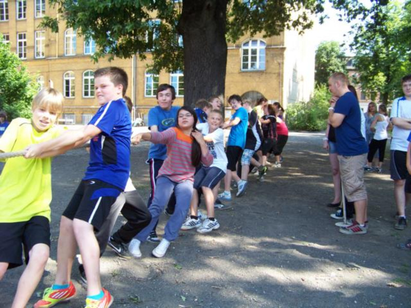 Im Anschluss fand der Wettkampf im Tauziehen statt. Hier siegte die Klasse 8a in den Klassenstufen 7 bis 9.