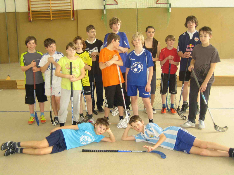 Am Tag der offenen Tür begannen die Floorballer der 5. und 6. Klassen. Anschließend bewiesen einige von ihnen außerdem ihr Können in der Sportart Basketball.
