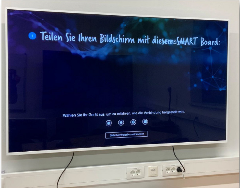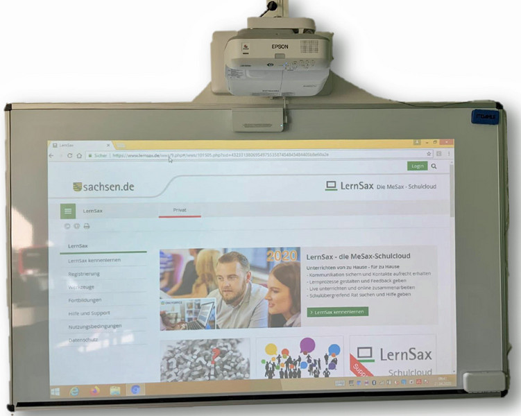 Ausstattung: Ultrakurz LCD-Technik interaktiv mit Touch, Datenprojektor Epson EB-695Wi + Whiteboard 2m x 1,30 m aus Stahlemaille