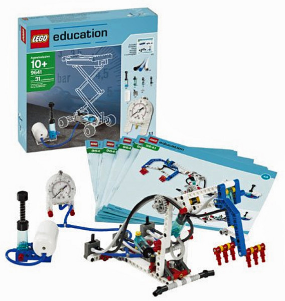 Mit dem Ergänzungsset (Lego 9641) werden 14 Grundprinzipien der Mechanik im Zusammenhang mit der Pneumatik vorgestellt. Enthalten sind u.a. Pumpen, Zylinder, Ventile, ein Lufttank und ein Manometer (misst in Bar und Psi) sowie Anleitungen für 4 Hauptmodelle.