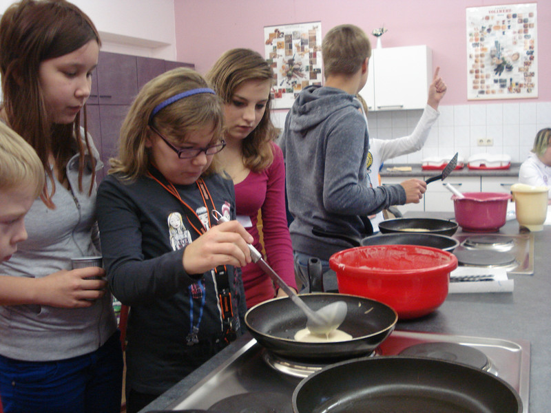 An unterschiedlichen Stationen konnten die Schüler sich ausprobieren, Sport treiben, basteln, rechnen oder sich mit der Chemie vertraut machen. Eine Fahrradstation gab es, in der Geschichte wurde gekramt, Russisch konnte man erleben und in der Küche Plinse backen.