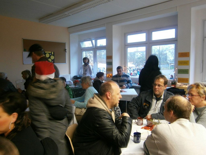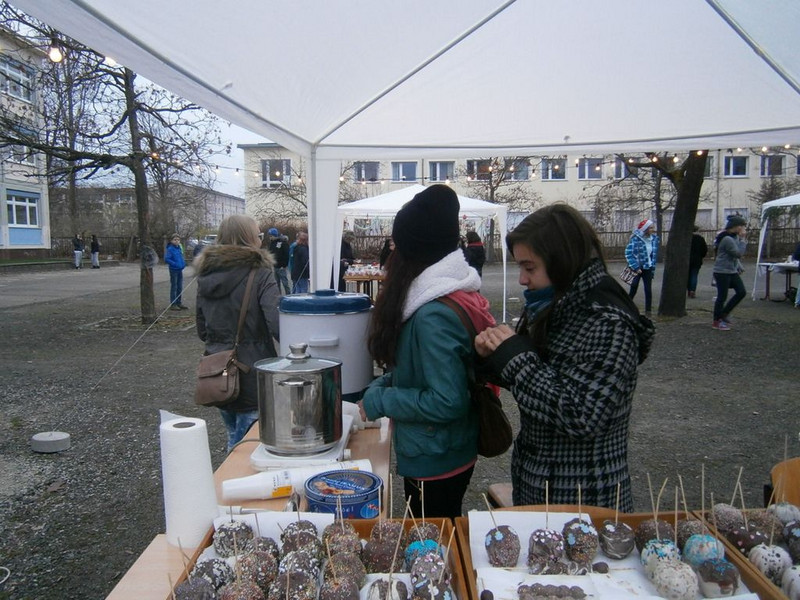Jede Klassenstufe hatte wieder einen Stand, den sie selbst betreute. Im Angebot waren: Soljanka, Wildgulasch, gegrillte Bratwürste und Plinse. Das Weihnachtscafe lud zu Kaffee und Kuchen ein.